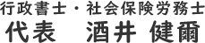 | 代表者 | 行政書士・社会保険労務士 酒井 健爾(さかい けんじ) |